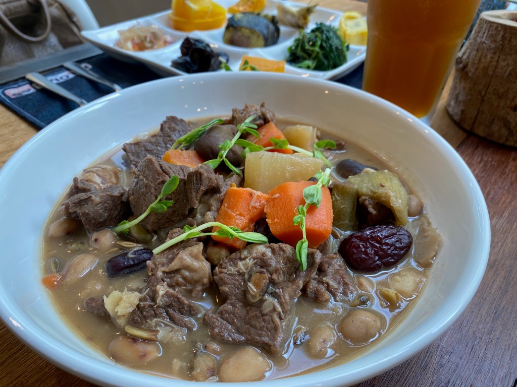 The main dish was served very fast. The chef combined 3 different parts of beef into this dish, adding taro, grilled nuts, dried red prune, and some other vegetables. This was a very warm dish, but the chef told me some ingredients’ season ends soon, so this dish wouldn’t be on the menu until winter time. The meat was very tender and not greasy as I thought. I felt very satisfied with this stewed. There were not many customers in the bistro, mostly are old friends, I guess it is because today was a weekday. I talked to the chef, quite easy-going person. Staying for a while, getting ready for the next stop, but I think I will definitely visit the bistro again. Eating here reminds me the time in LCB.
