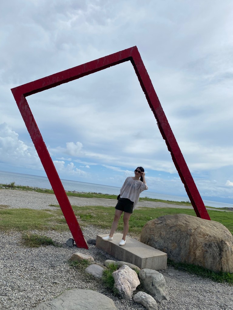 After the satisfying lunch, back onto the bike and continue the travel. The next stop is the Taitung forest park. I think this is the best option under consideration of this Covid time: outdoor and spacious. Exactly as I thought, no one was in the park except for the people working here. I was like a crazy woman, biking, taking photos, running under the sun for taking selfies……all alone!! Well, I look weird but I was satisfied. I was alone in the park for so long, including talking to my mom while sitting on the stone watching the beautiful lake. I have to mention it again: THE WEATHER IS WONDERFUL! Any photo looks like a painting.