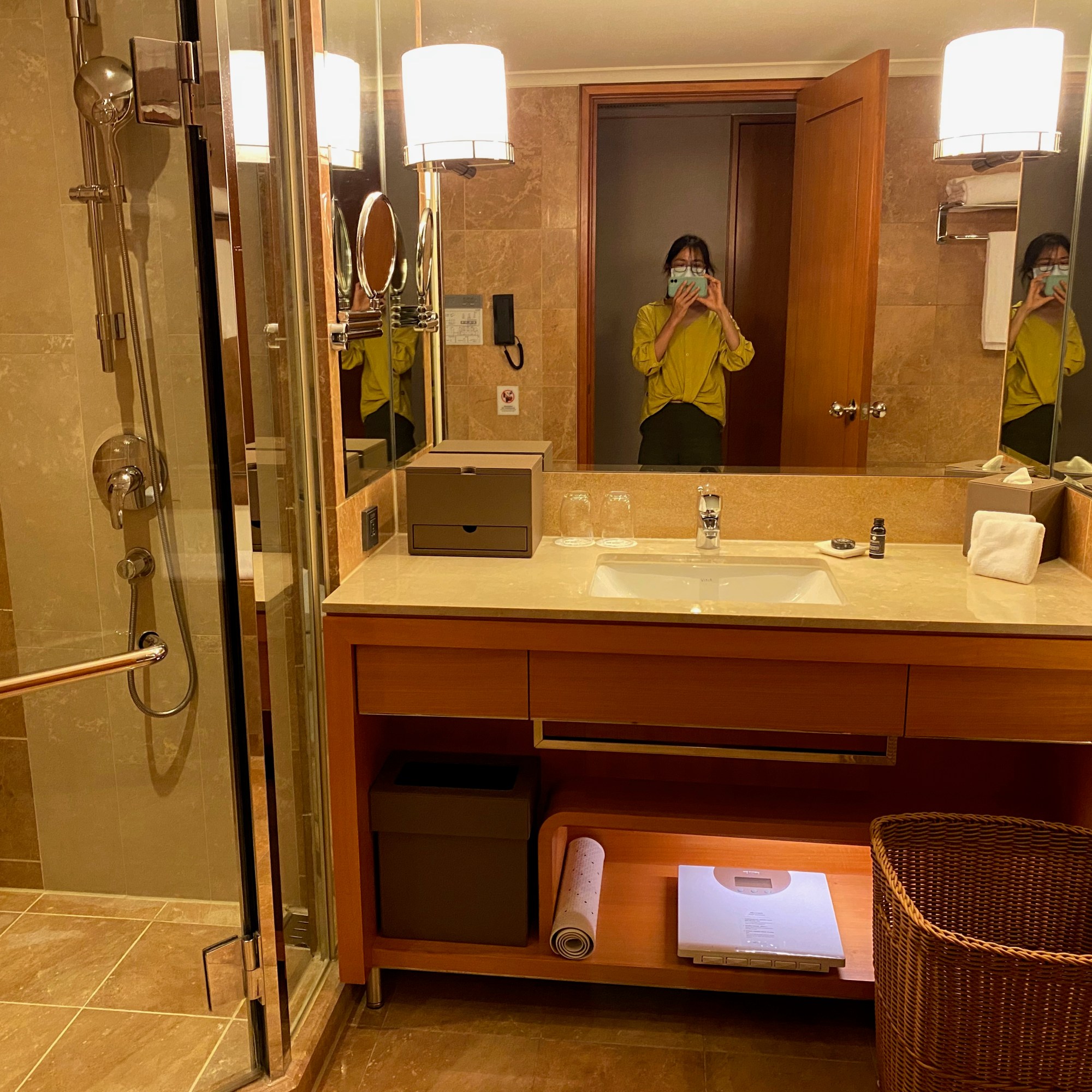 This hotel is also a Japanese chain hotel like Mitsui Garden hotel. It is very new, just open recently. The room is very spacious, and of course Japanese style of shower room and toilet, which are separate. There is my favorite long sofa next to the window as well as a desk for working, with many plug-in next to it. It is a very convenient design. As I said before, Japanese style hotels always pay attention to details to make customers feel comfortable and convenient.