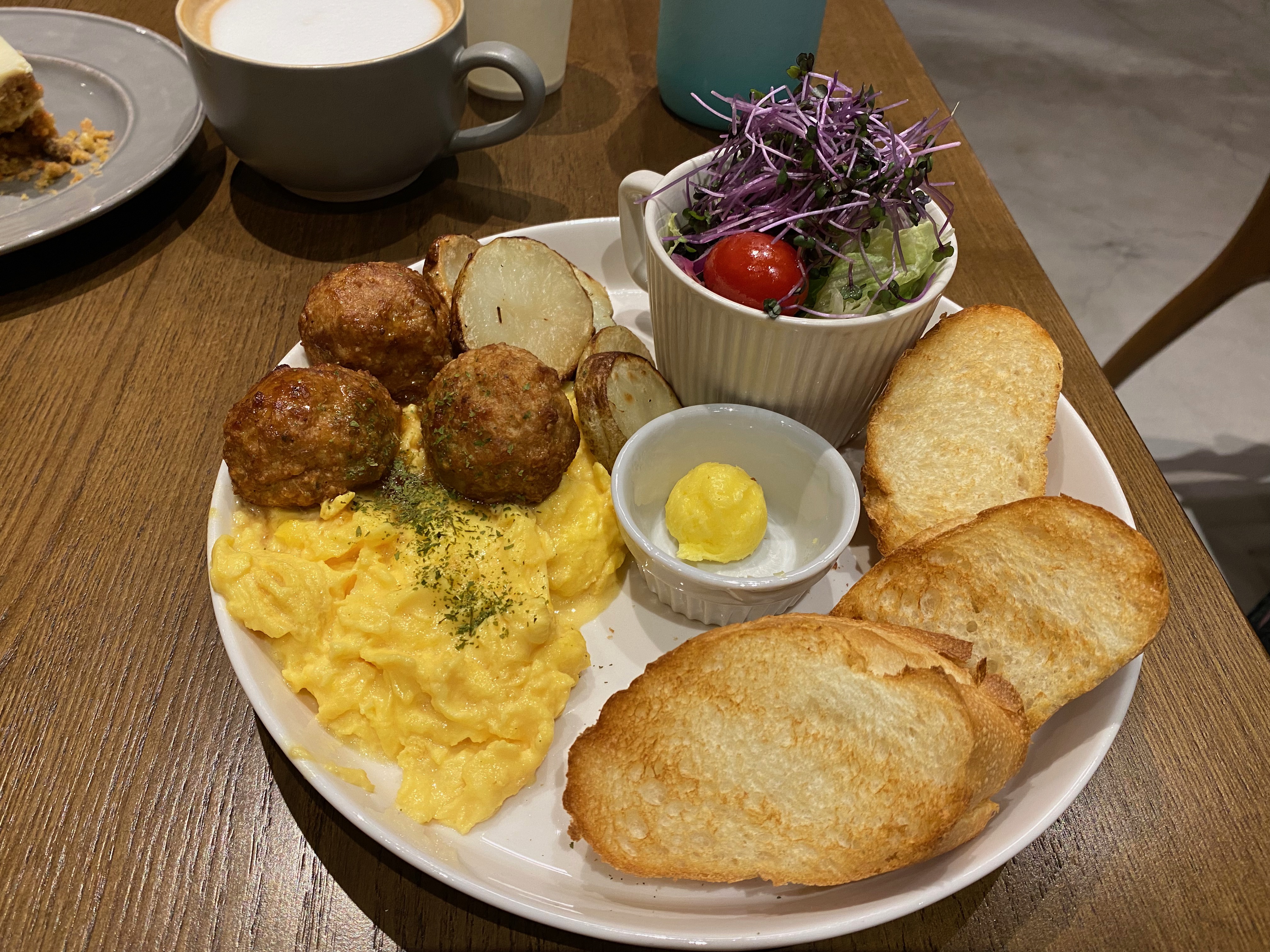 This brunch restaurant has been on my list for a long time. It has three branches, and the menu is different from other brunch restaurants. Many brunch restaurants always have fixed menu like scrambled egg with bacon, ham, hash brown, toast, etc. But Coppii Lumii offers their customers to choose what is inside the breakfast plate, and customers can add extra side into it. Moreover, the side dishes are different from other brunch shops. They have meatballs, warm soup, grilled sweet potatoes, truffle scrambled eggs, grilled vegetables, etc. I ordered a set breakfast plate and extra soup and a carrot cake. I didn’t know the soup came out to be so large! I didn’t finish everything and I took away the rest of carrot cake. I have been wanting to try carrot cake, but their carrot cake is too sweet for me. I recommended this restaurant because I like to choose my own side dishes, instead of always ordering the set one on the menu. This brunch restaurant is very popular, but the spacious area allows a larger amount of customers at one time. However, it did sacrifice some quietness and peaceful time for each customer, since too much human talking voice, can’t even hear the background music.