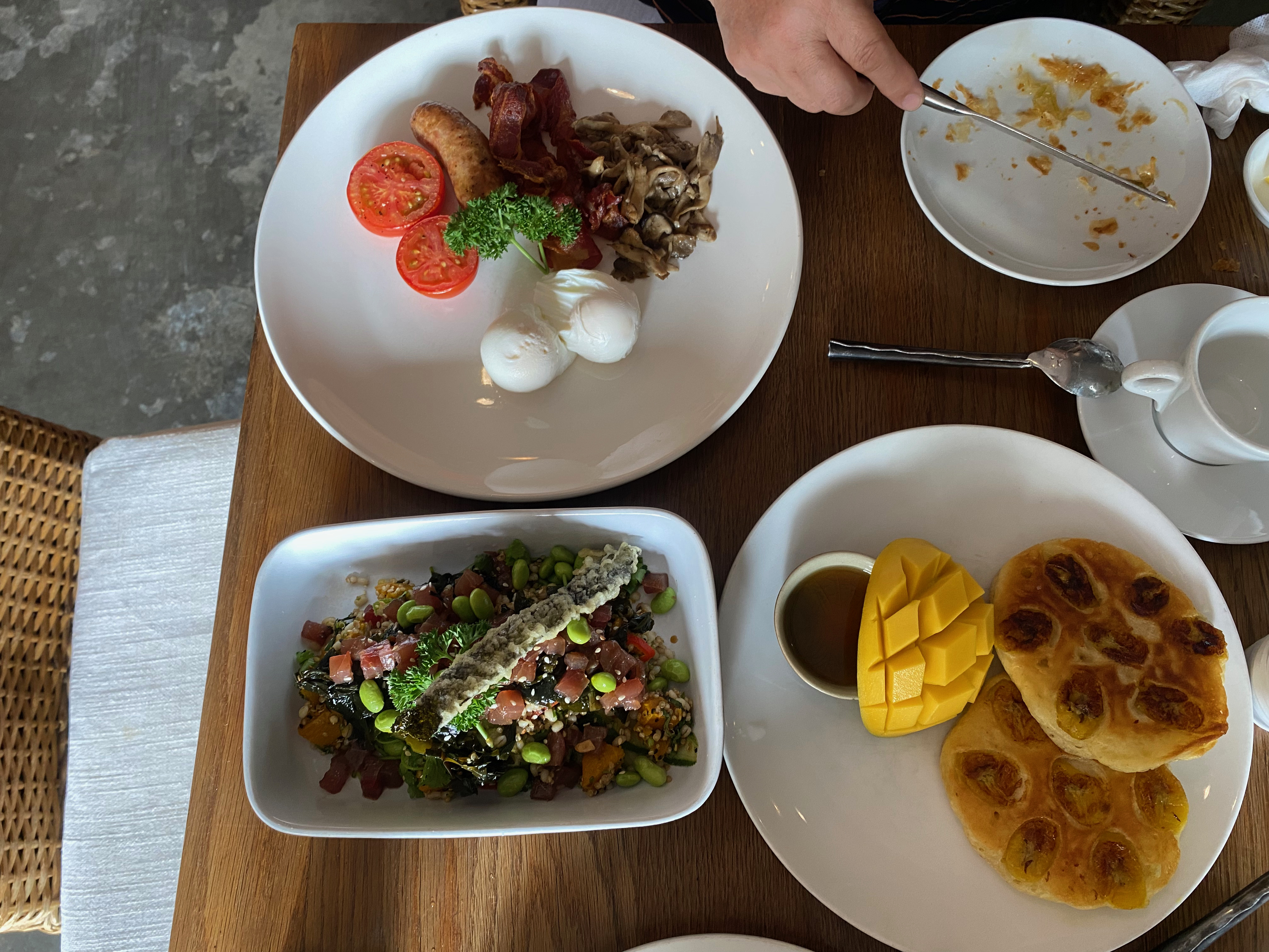 Mekong Merchant Saigon is today’s brunch place since my mom wanted English breakfast. And also my sister recommended their pancake. We ordered a plate of English breakfast(it comes with crossiant and bread), shakshuka for me, a seared-tuna salad, banana pancake and juice.