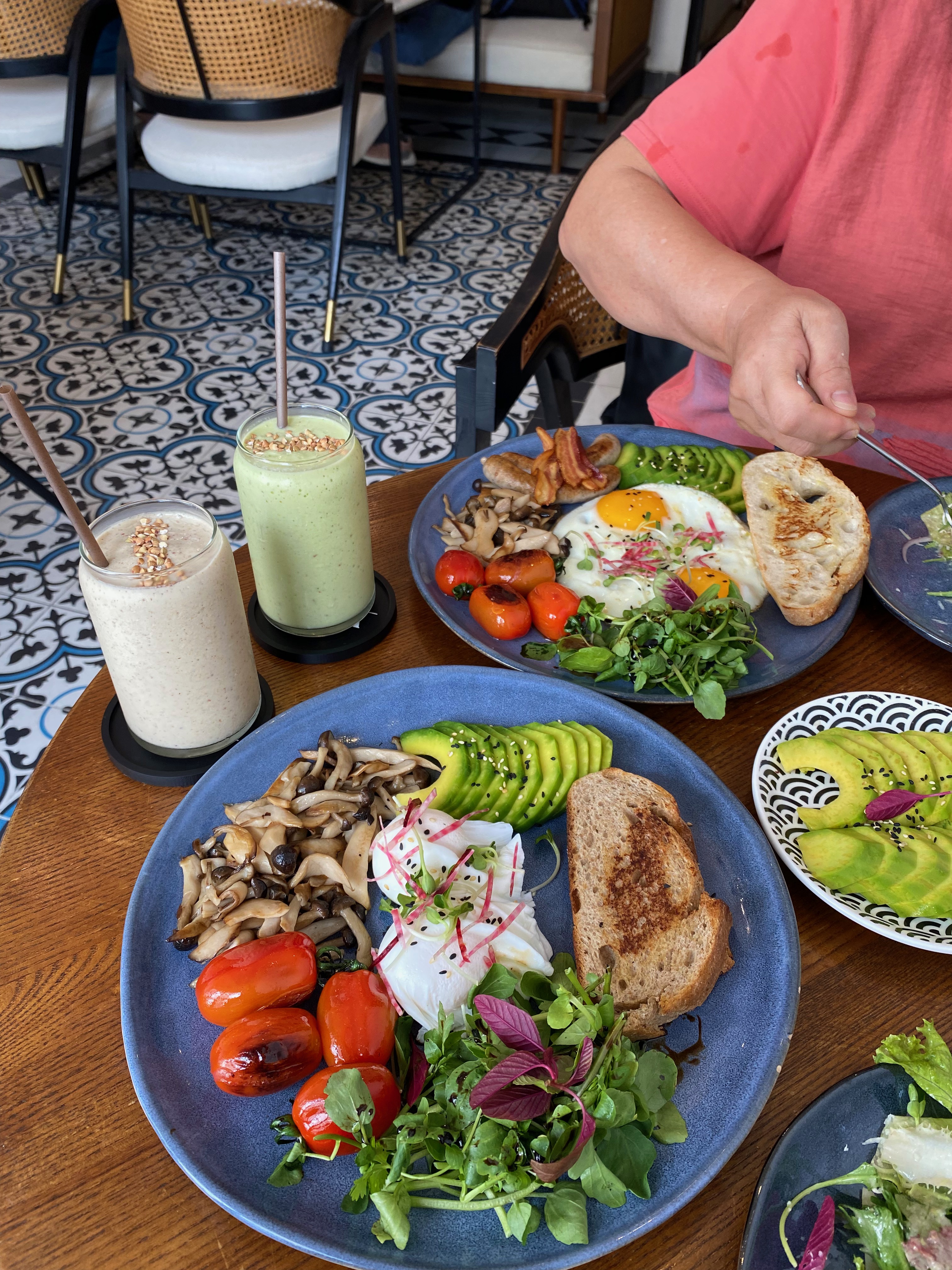 Each branch has its own menu, with some common items, but a slightly different. Before deciding which branch to visit, I already checked the menu online. I found out these two branches have a wider variety of menu. And of course, for a person who always suffers from making choices like me, it is not hard to guess I ordered a tons of food on the table haha. That was such a fulfilling breakfast. For the first time in district 2, my sister and I got changed to a bigger table. For the second time, my mom and I ordered two breakfast plates(but mine was vegetarian), one salad, one pancake, 2 juices, and 2 other drinks and with an extra plate of avocados. I didn’t expect we will have so many avocados haha but my mom finished it. She really loves avocados!